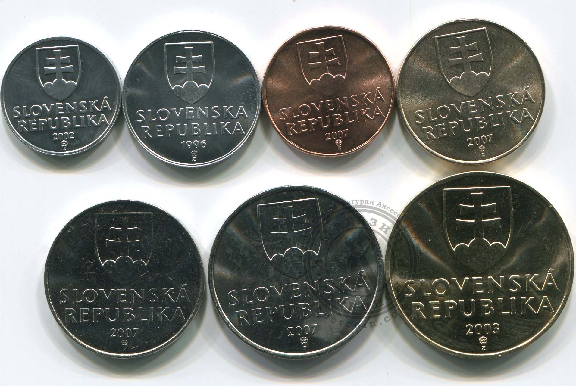 Словакия набор монет 10, 20, 50 геллеров, 1, 2, 5, 10 крон (7 монет) UNC