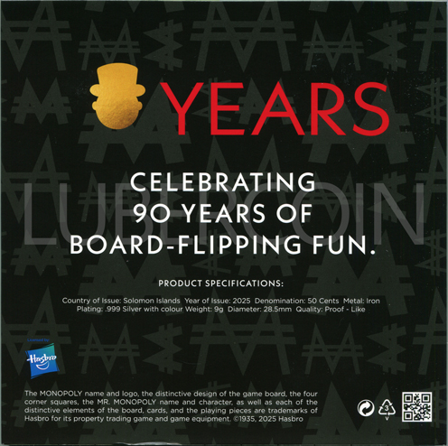 Соломоновы острова набор монет 50 центов 2025 Монополия. 90 лет (6 монет в оригинальном альбоме) BU