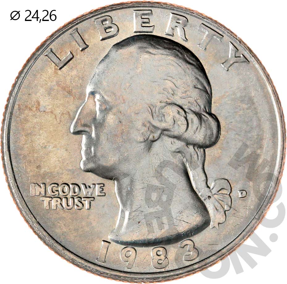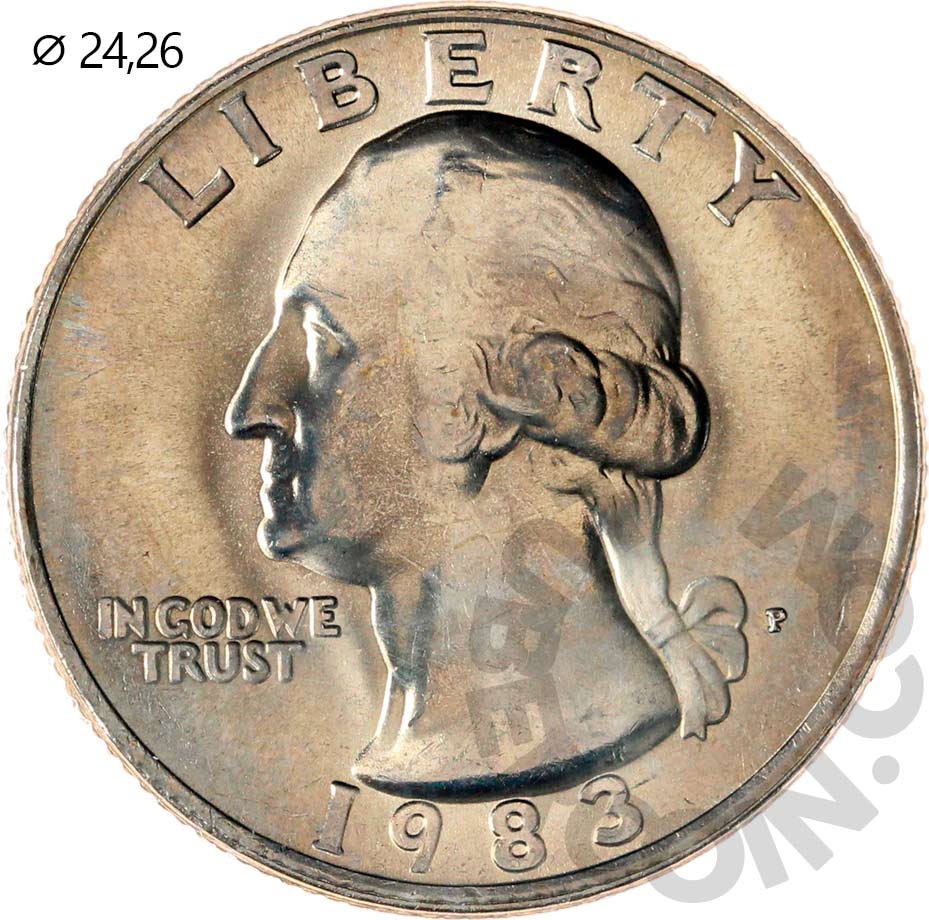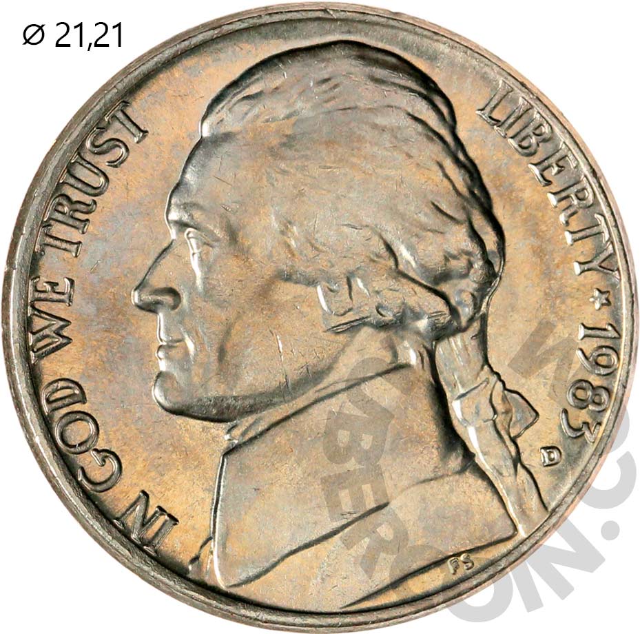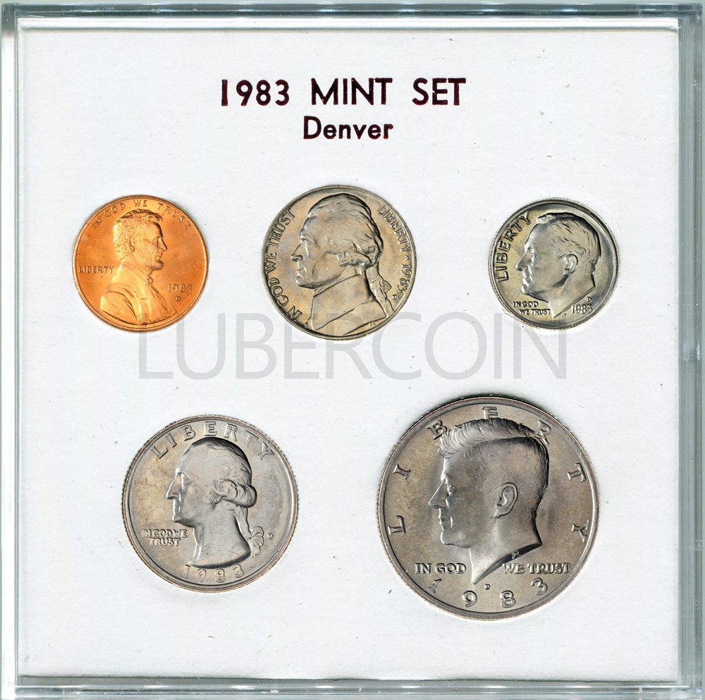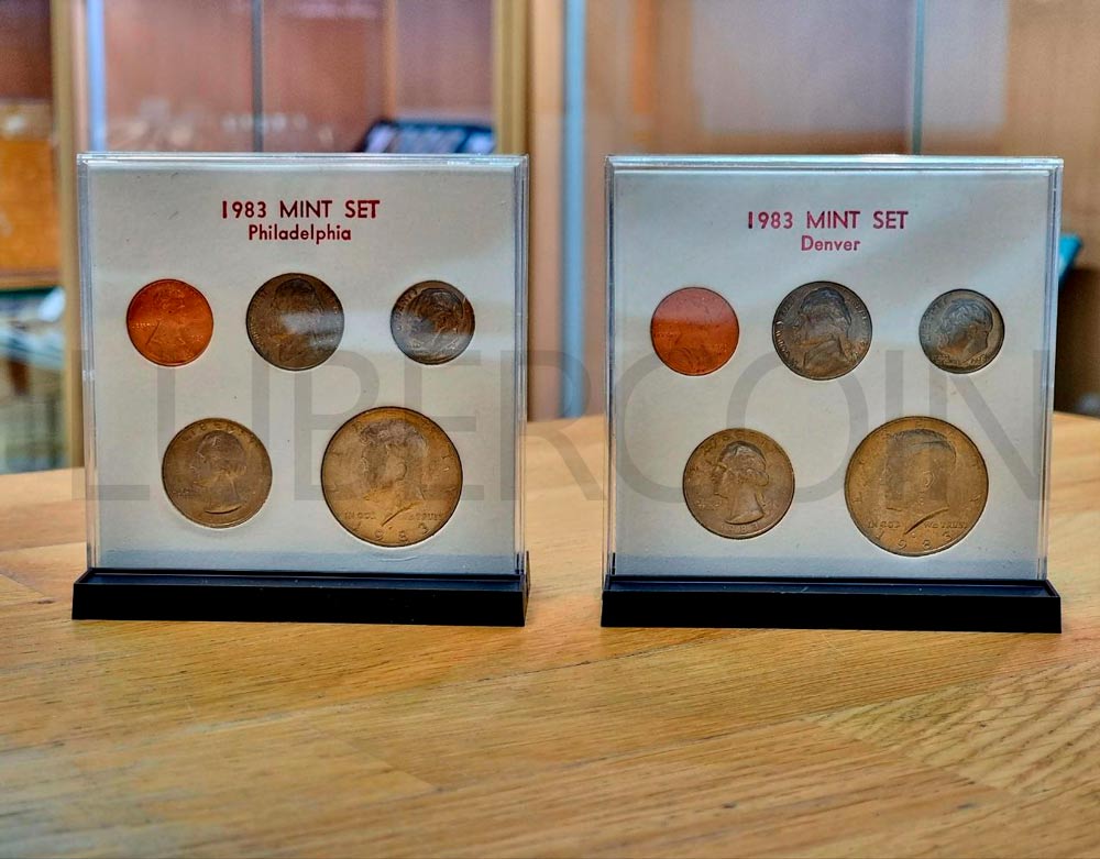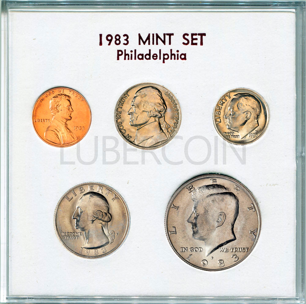 США набор монет 1, 5, 10, 25, 50 центов 1983 P+D (10 монет в упаковке) UNC «Private Set» (Патина)