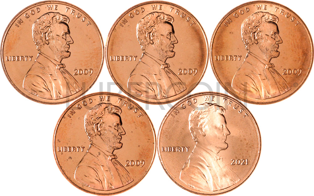 США 1 цент 2009 Авраам Линкольн. 200 лет со дня рождения (5 монет) P UNC