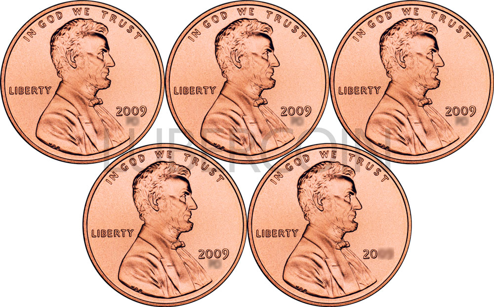 США 1 цент 2009 Авраам Линкольн. 200 лет со дня рождения (5 монет) UNC