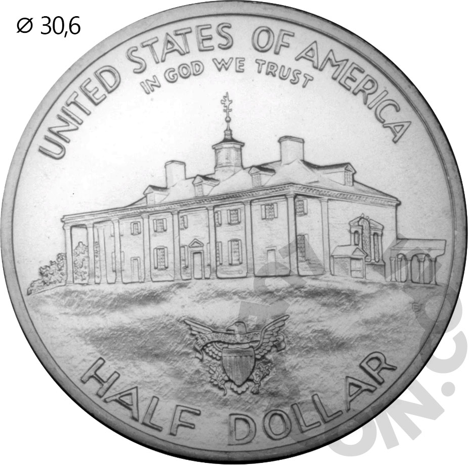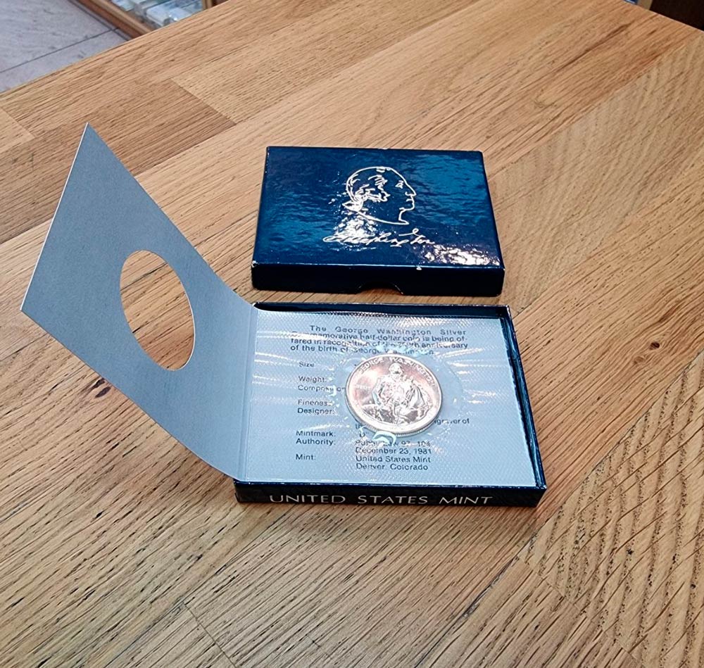 США 50 центов 1982 D Джордж Вашингтон. 250 лет со дня рождения (запайка) UNC