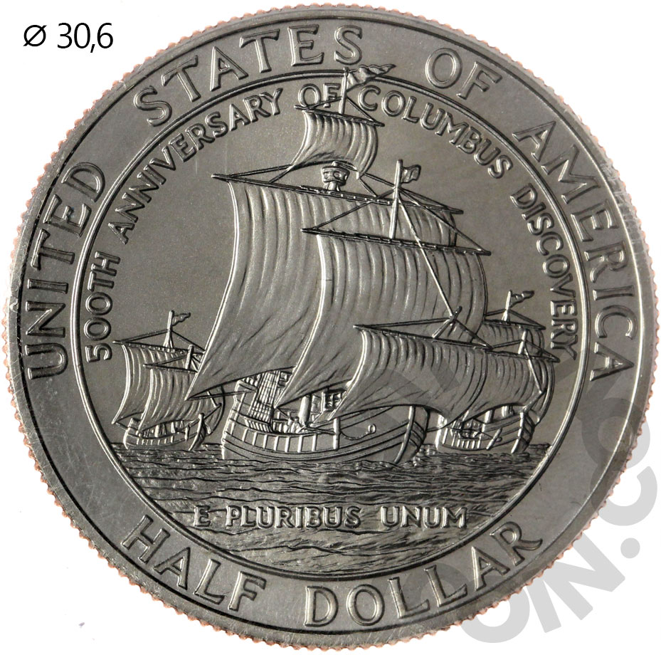 США 50 центов 1992 Открытием Америки Колумбом. 500 лет со дня события UNC