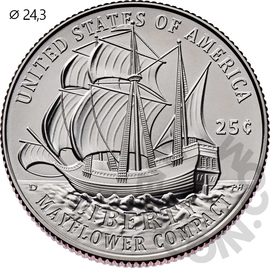 США 25 центов 2026 Мэйфлауэрское соглашение D UNC