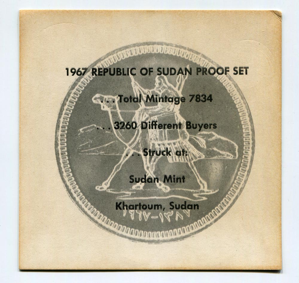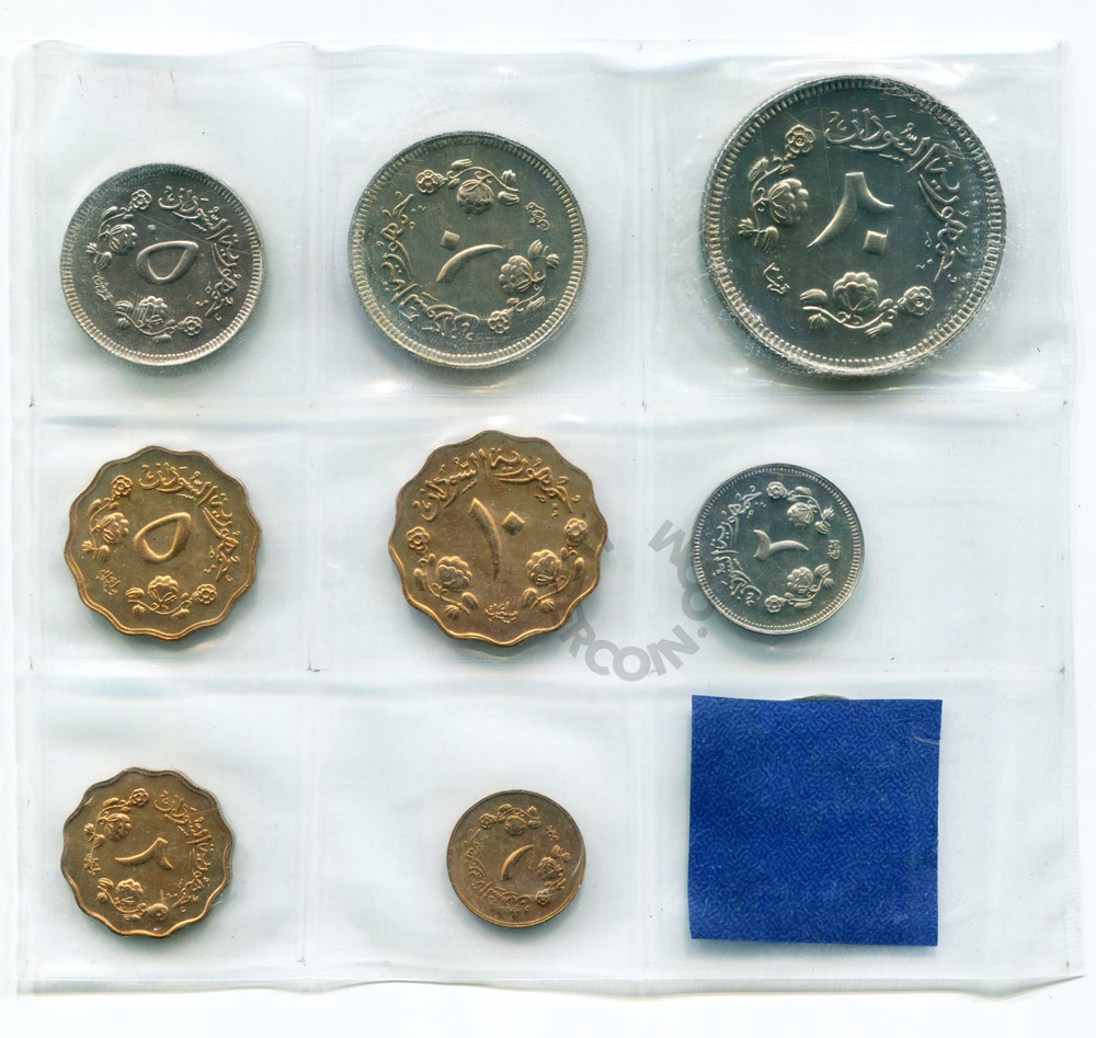 Судан набор монет 1, 2, 5, 10 миллимов, 2, 5, 10, 20 киршей 1967 (8 монет в запайке) UNC (Патина)