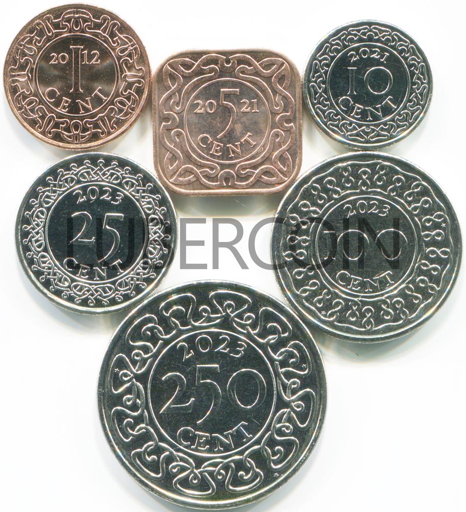 Суринам набор монет 1, 5, 10, 25, 100, 250 центов 2012-2023 (6 монет) UNC