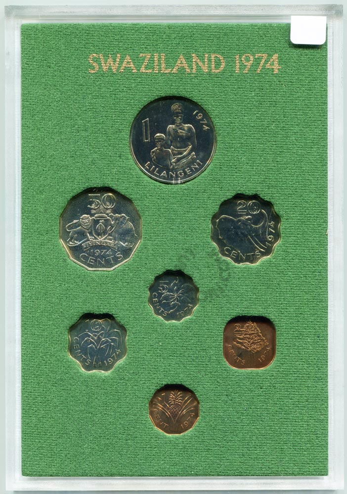 Свазиленд набор монет 1, 2, 5, 10, 20, 50 центов, 1 лилангени 1974 (7 монет в оригинальной упаковке)
