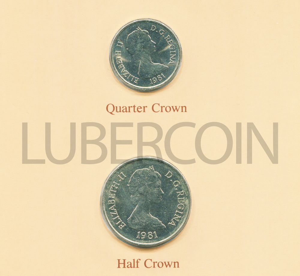 Теркс и Кайкос набор монет 1/4 и 1/2 кроны 1981 (2 монеты) UNC (Патина)