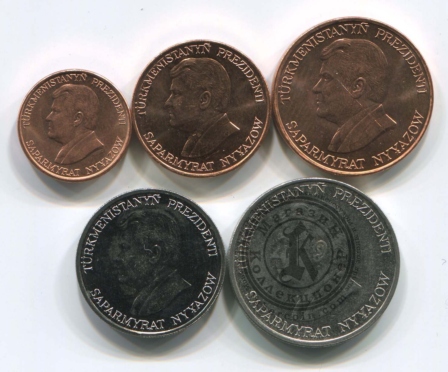 Туркменистан набор монет 1, 5, 10, 20, 50 тенге 1993 (5 монет) UNC