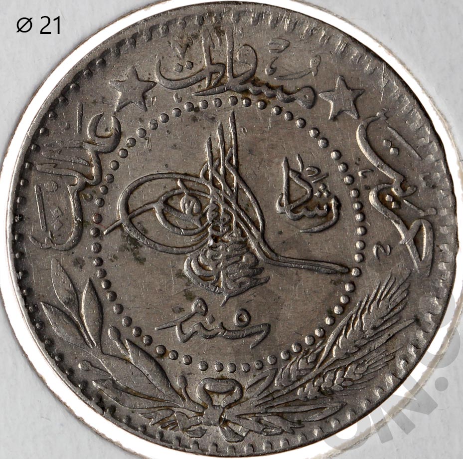 Турция 20 пар 1909 «Reshat» справа тугры. "٥" под тугрой (00046437)