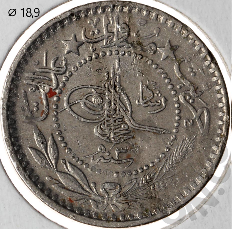 Турция 10 пар 1909 «Reshat» справа тугры. "٣" под тугрой (00046462)