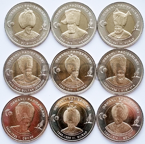 Турция набор монет 1 лира 2025 Султаны Османской империи (9 монет) UNC