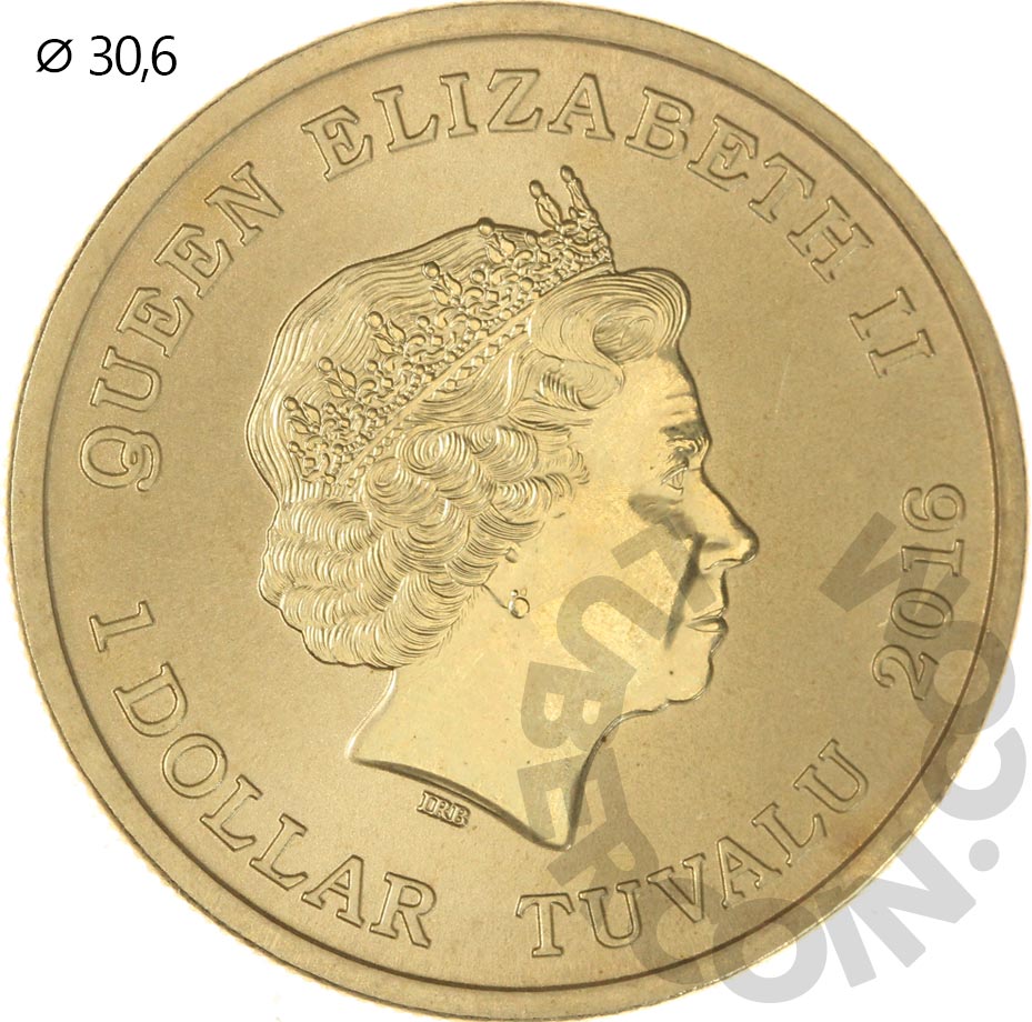 Тувалу 1 доллар 2016 Год Дракона UNC (Патина)