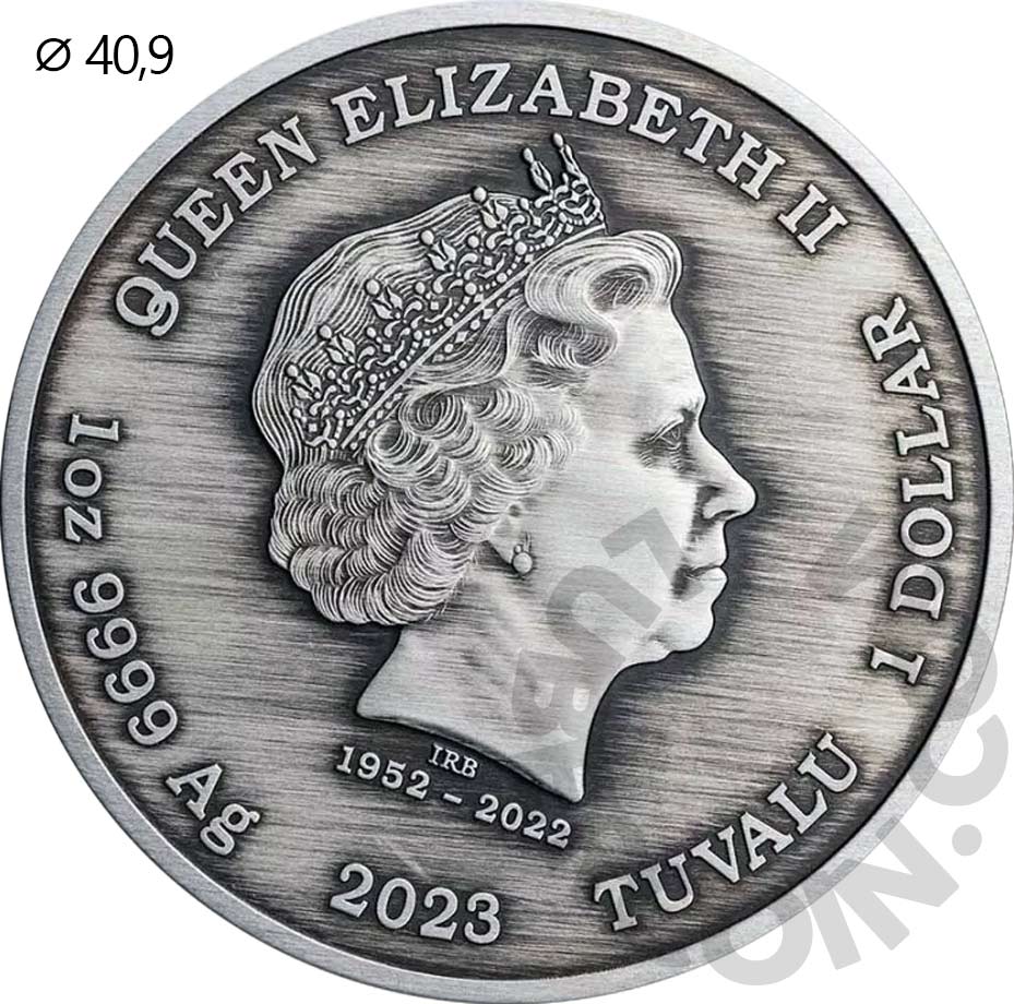 Тувалу 1 доллар 2023 Черный флаг: Генри Эвери / Парусник «Fancy» UNC (Antique finish)