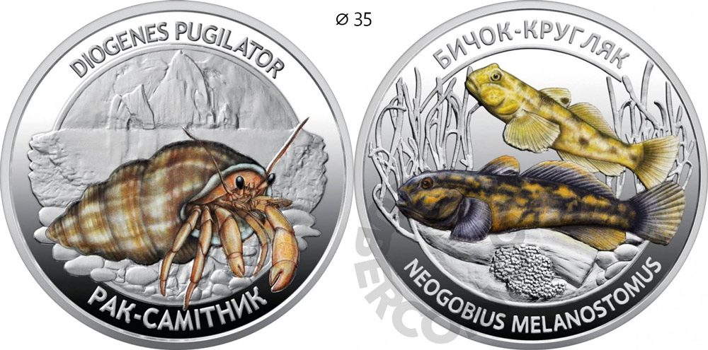 Украина 5 гривен 2025 Рак-отшельник и Бычок-кругляк (2 монеты) UNC