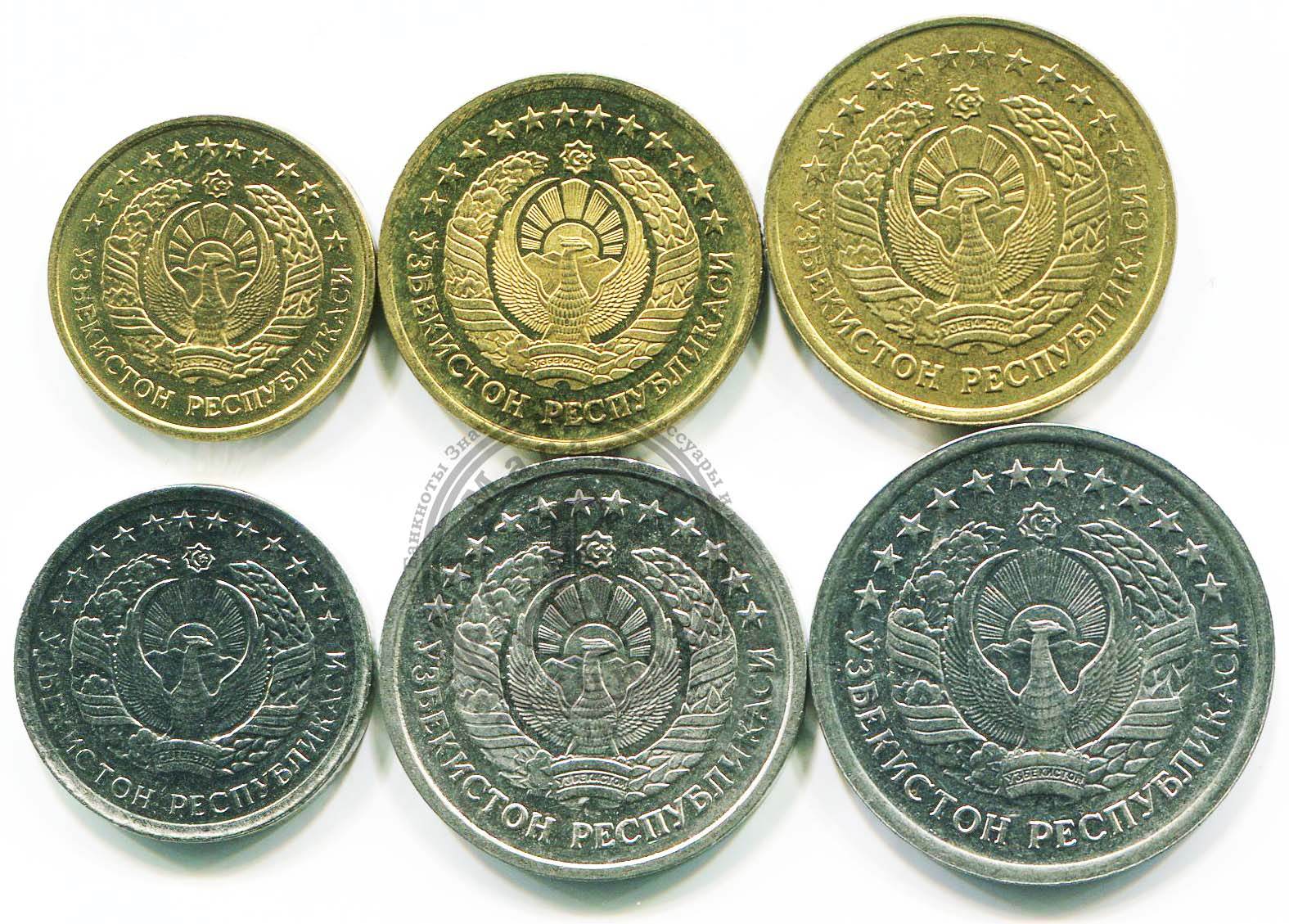 Узбекистан набор монет 1, 3, 5, 10, 20, 50 тийин 1994 (6 монет)
