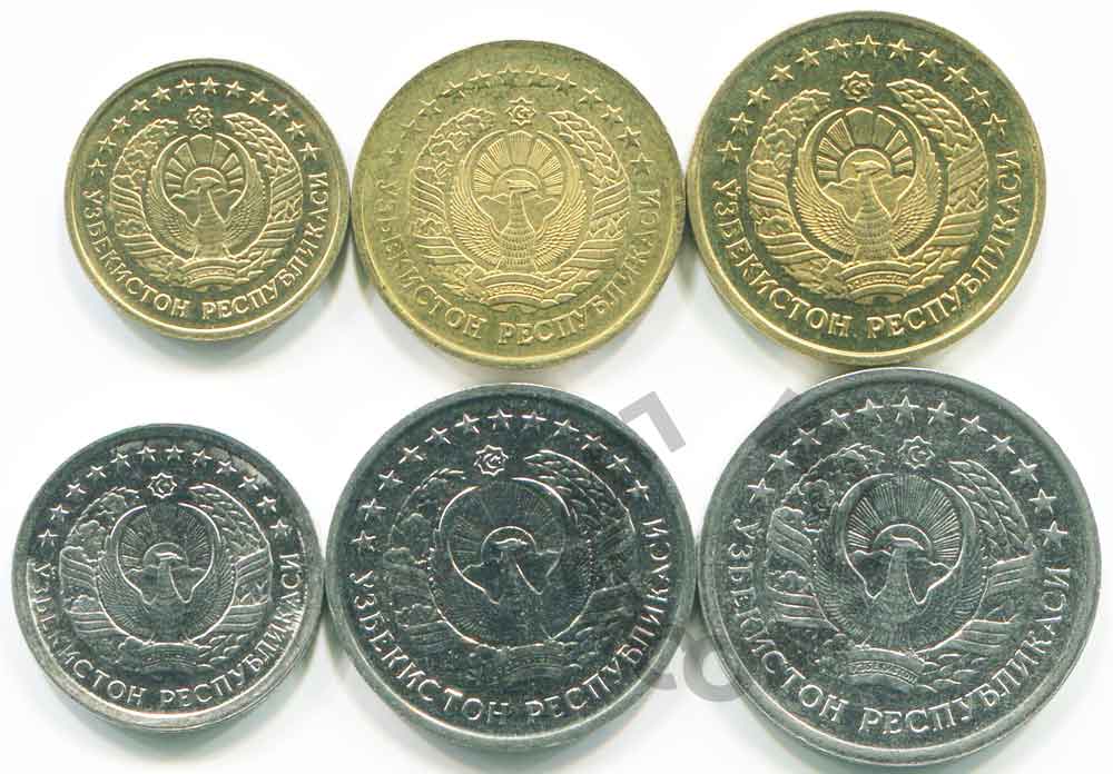Это полный набор монет Узбекистана 1994 года. Другие номиналы в этом году не выпускались. Но это не полная подборка всех номиналов Узбекистана.