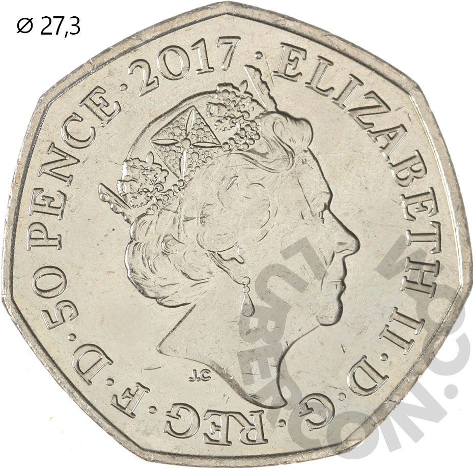 Великобритания 50 пенсов 2017 Кролик Питер UNC