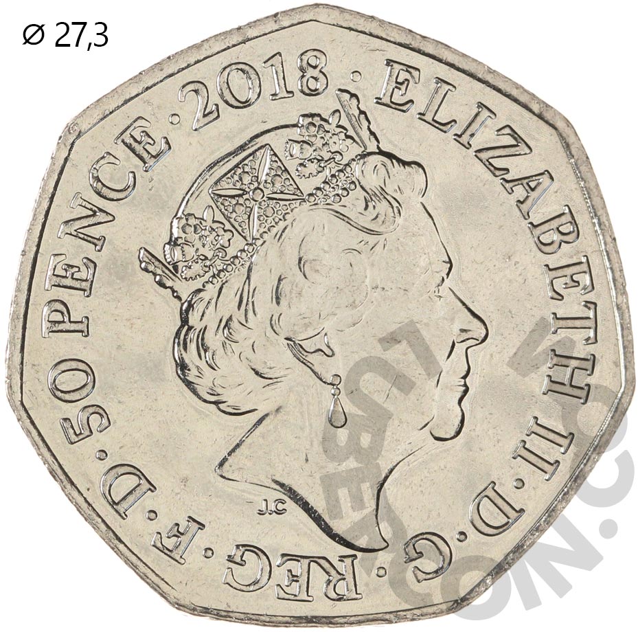 Великобритания 50 пенсов 2018 Кролик Флопси UNC