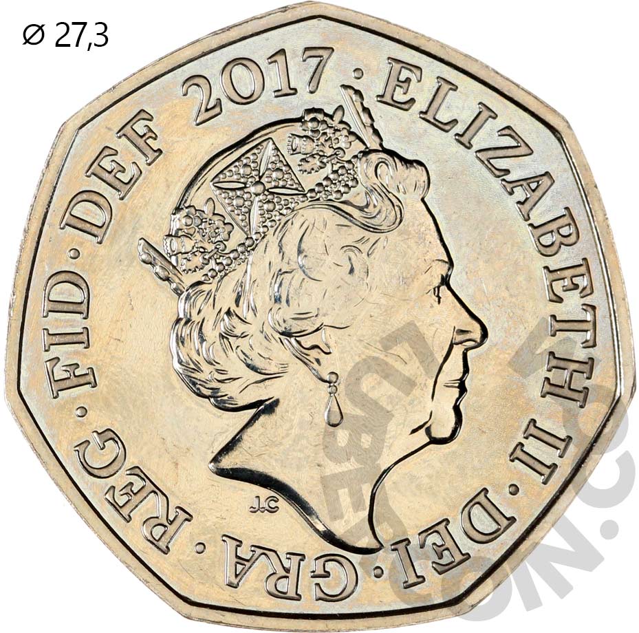 Великобритания 50 пенсов 2017 Исаак Ньютон UNC