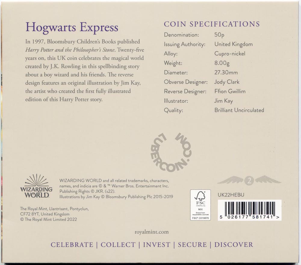 Великобритания 50 пенсов 2022 Гарри Поттер. Хогвартс-экспресс (Монета в оригинальном буклете) BU