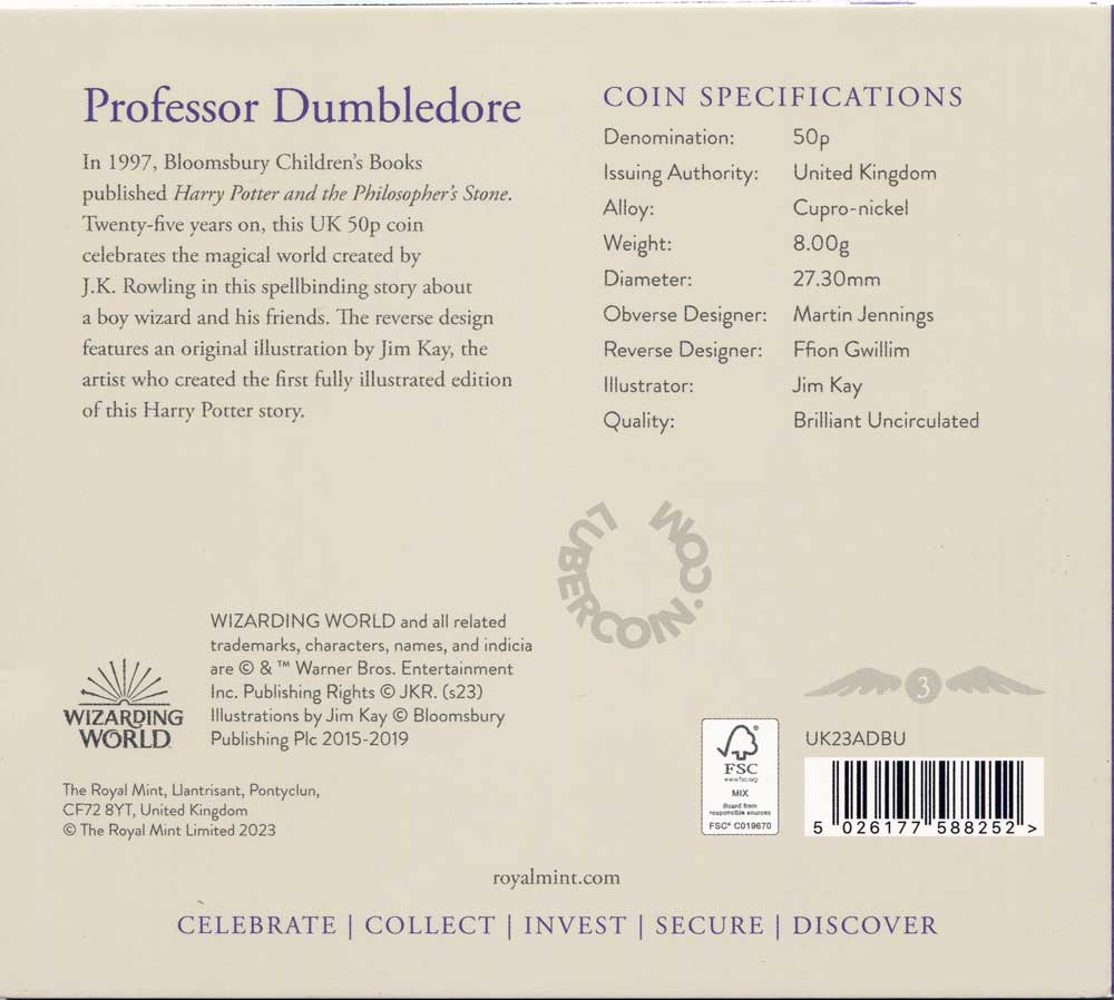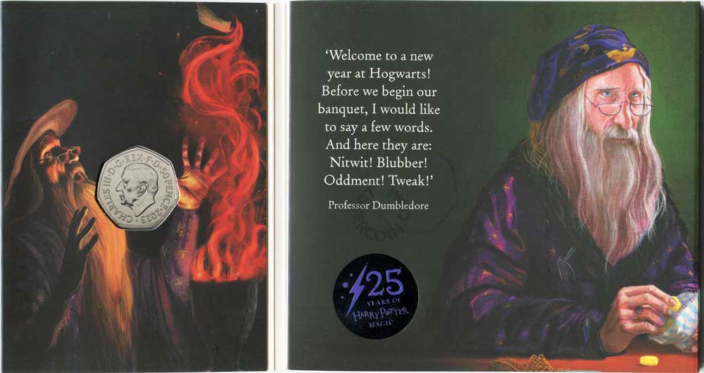 Великобритания 50 пенсов 2023 Гарри Поттер. Альбус Дамблдор (Монета в оригинальном буклете) BU