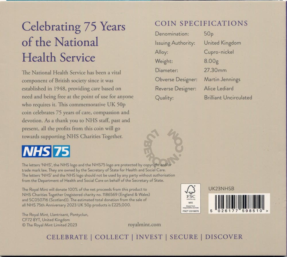Великобритания 50 пенсов 2023 Национальная служба здравоохранения (Монета в оригинальном буклете) BU