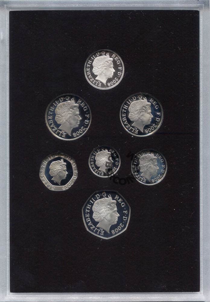 Великобритания набор монет 1 пенни, 2, 5, 10, 20, 50 пенсов, 1 фунт 2008 (7 монет + коробка) PROOF