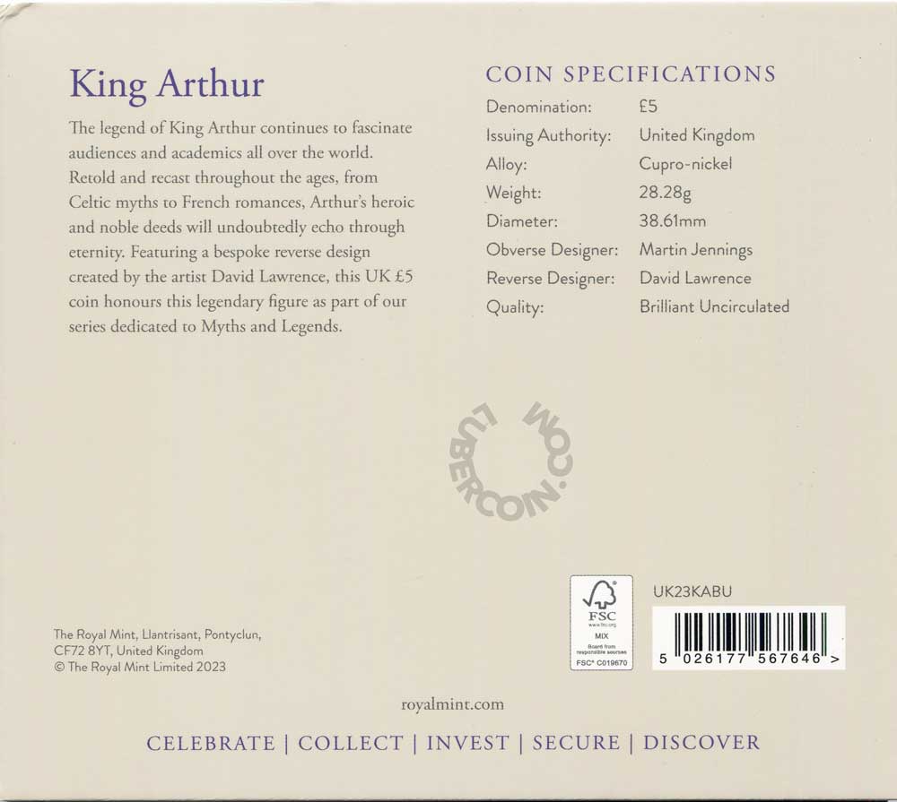 Великобритания 5 фунтов 2023 Мифы и легенды. Король Артур (Монета в оригинальном буклете) BU