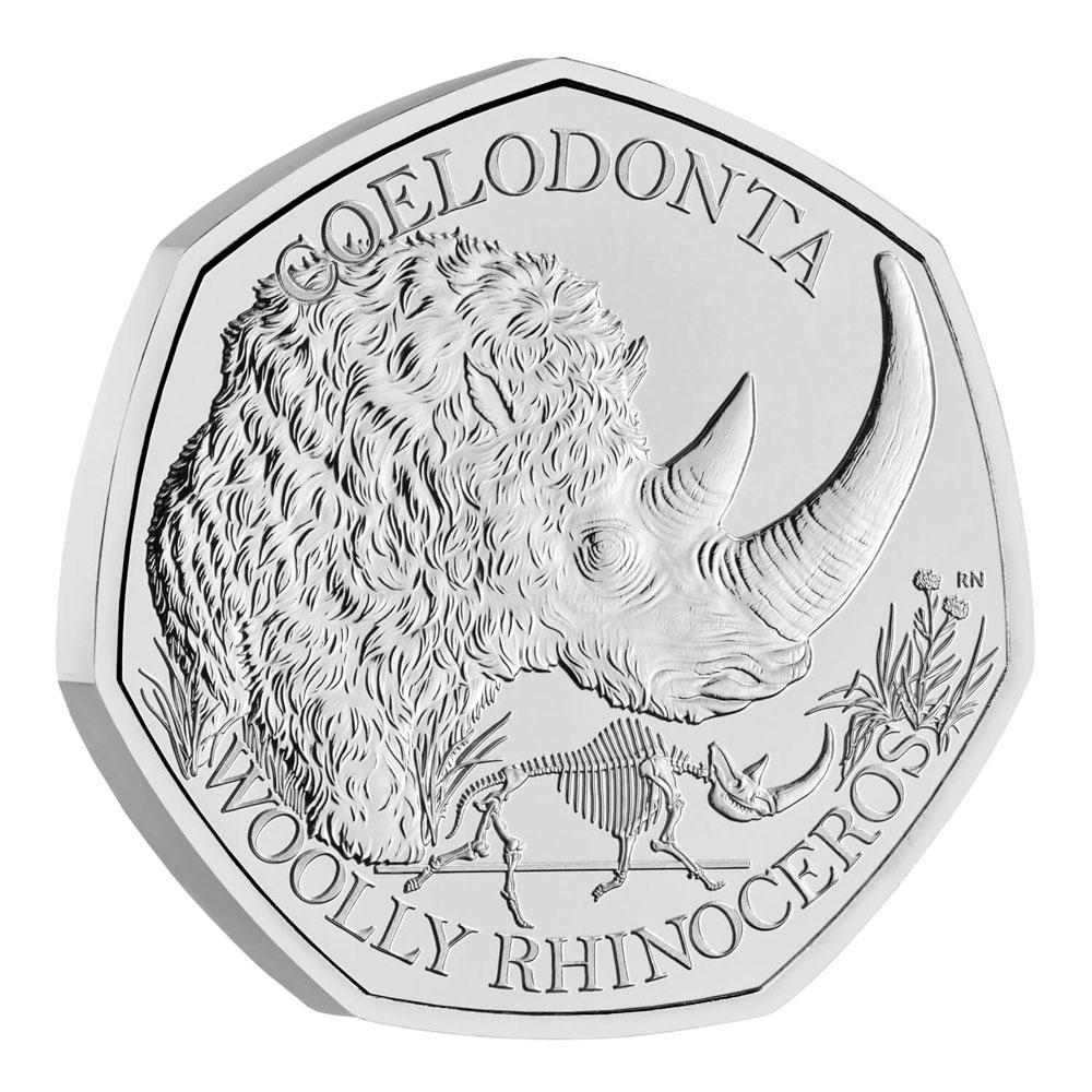 Великобритания 50 пенсов 2024 Гиганты ледникового периода: Шерстистый носорог BU