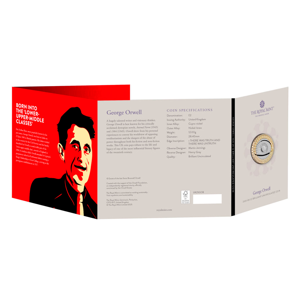 Великобритания 2 фунта 2025 Джордж Оруэлл (Монета в оригинальном буклете) BU