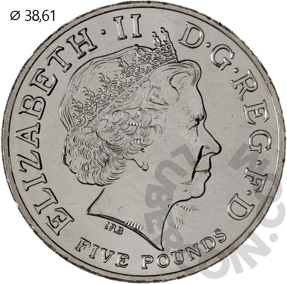 Великобритания 5 фунтов 2005 Трафальгарское сражение. Парусники «Виктория» и «Тимирер» (00045768)