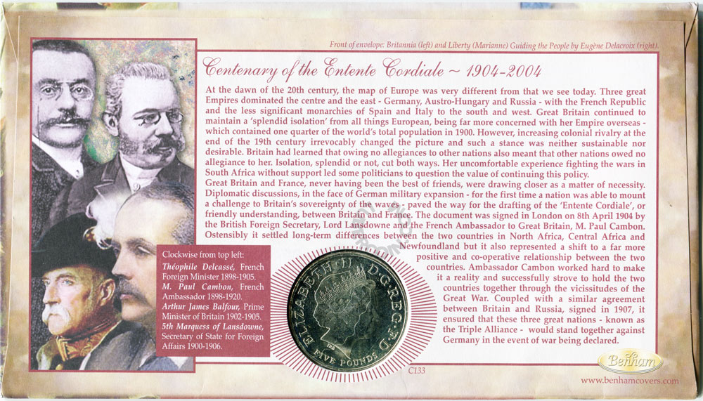 Великобритания 5 фунтов 2004 «Сердечное соглашение» (Монета в конверте) UNC