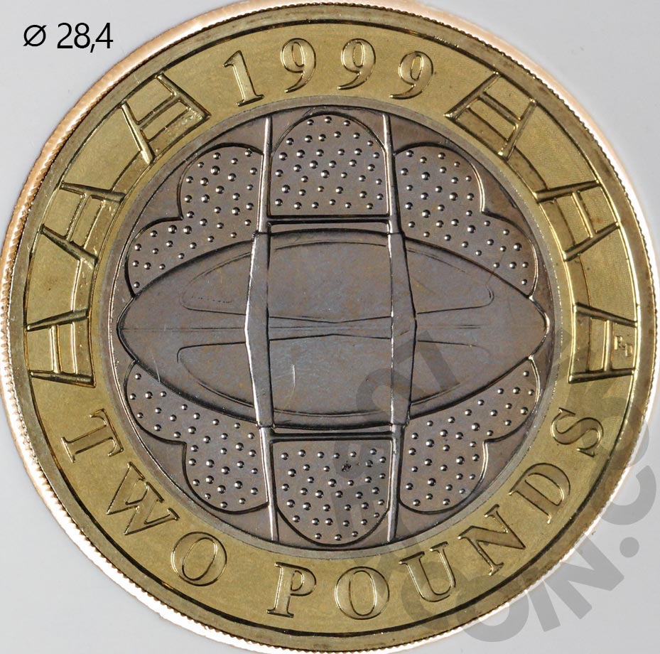 Великобритания 2 фунта 1999 Чемпионат мира по регби BU