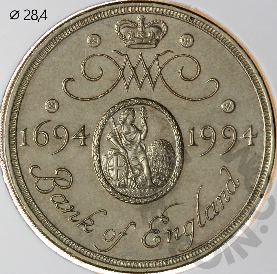 Великобритания 2 фунта 1994 Банк Англии. 300 лет со дня основания (00047606)