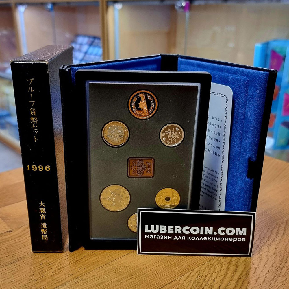 Япония набор монет 1, 5, 10, 50, 100, 500 йен 1996 (6 монет в оригинальной упаковке) PROOF