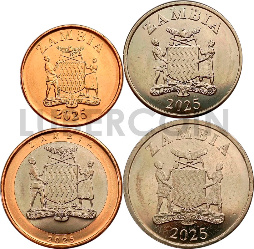 Замбия набор монет 50 нгве, 1, 2, 5 квач 2025 (4 монеты) UNC