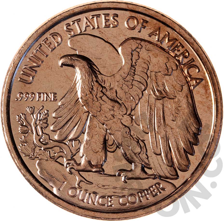 США Жетон / Раунд Медь 999. Унция «Шагающая Свобода / Орёл. 1 ounce copper» (50 ц. 1916 - 1947) UNC