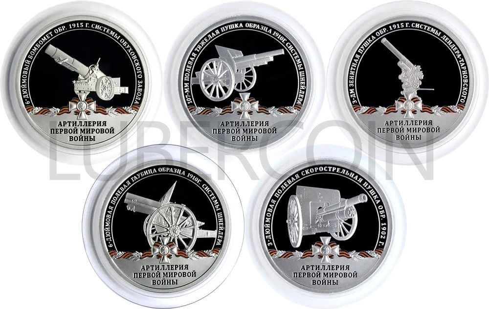 ГОЗНАК Набор жетонов / медалей 2026 «Артиллерия Первой мировой войны» (5 штук) СПМД PROOF