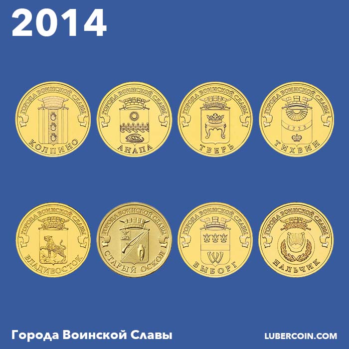 Монеты «Старый Оскол» и «Грозный» отчеканены на Московском монетном дворе. Все остальные — на Санкт-Петербургском.