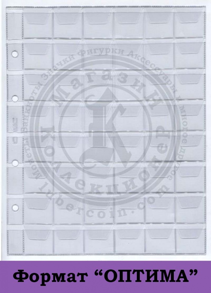 Лист формата ОПТИМА на 48 монет — универсальный вариант На одном листе как раз поместится вся серия монет. Лист можно хранить в любой папке формата ОПТИМА. ₽ |