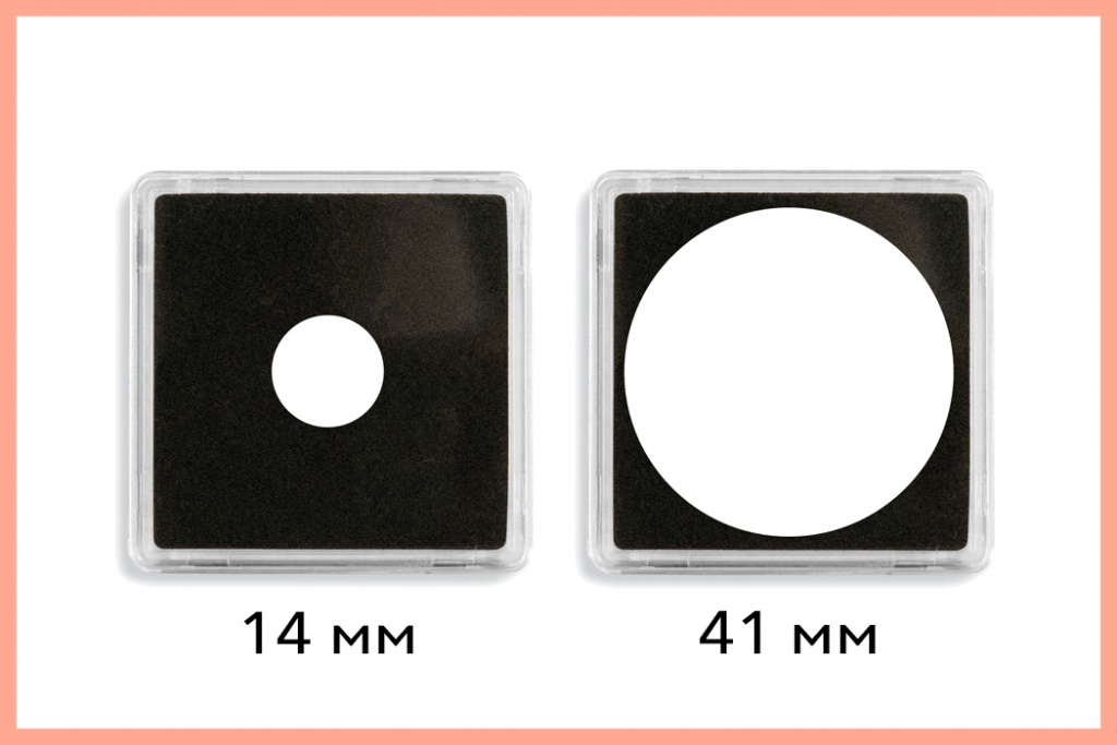 Квадратная капсула — это пластиковый квадрат 50х50 мм, внутри которого находится пенная вставка с отверстием для монеты. Капсула плотно закрывается, практически не пропускает воздух и влагу.