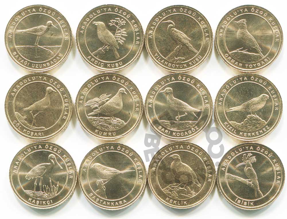 Турция набор монет 1 куруш 2021 Птицы Анатолии / Малой Азии (12 монет) UNC