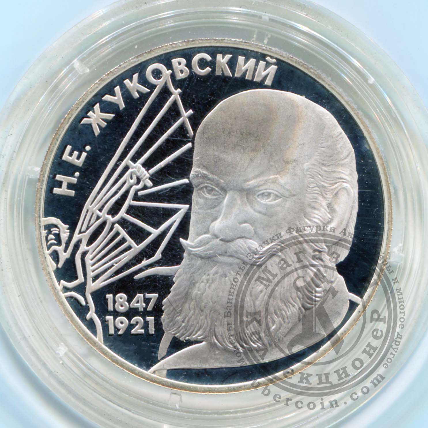 2 рубля 1997 Николай Жуковский. 100 лет со дня рождения PROOF (Патина)