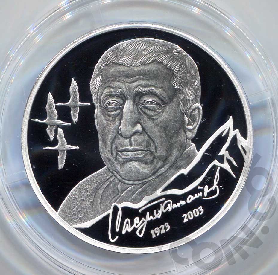 2 рубля 2023 Расул Гамзатов. 100 лет со дня рождения PROOF
