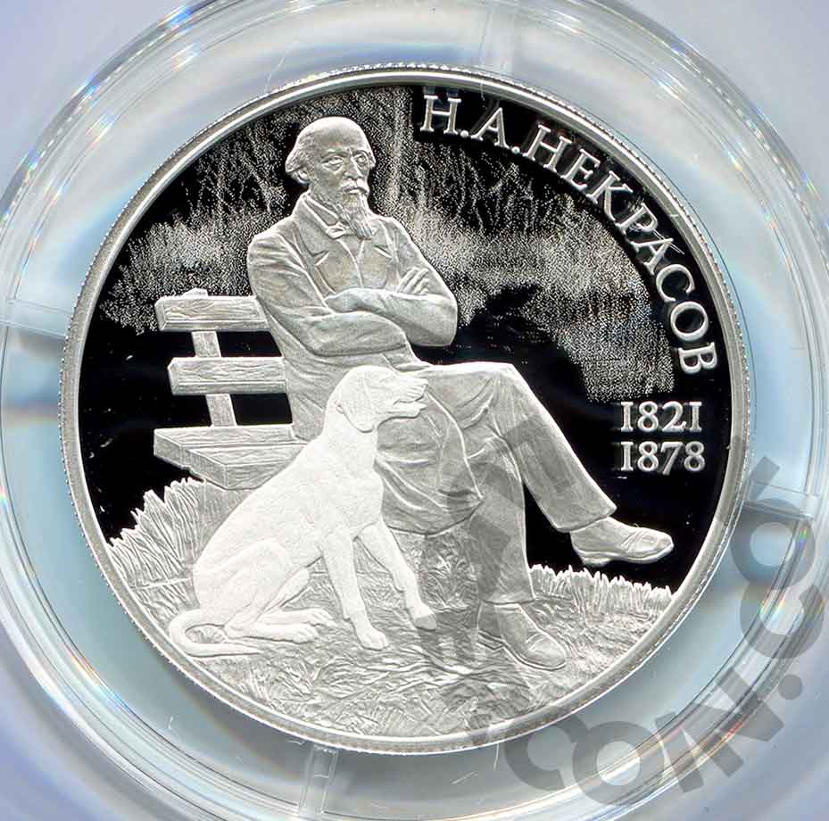 2 рубля 2021 Николай Некрасов. 200 лет со дня рождения PROOF