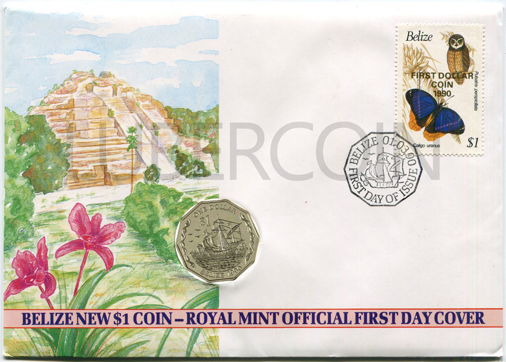 Белиз 1 доллар 1990 Корабли Колумба (Монета в конверте) UNC