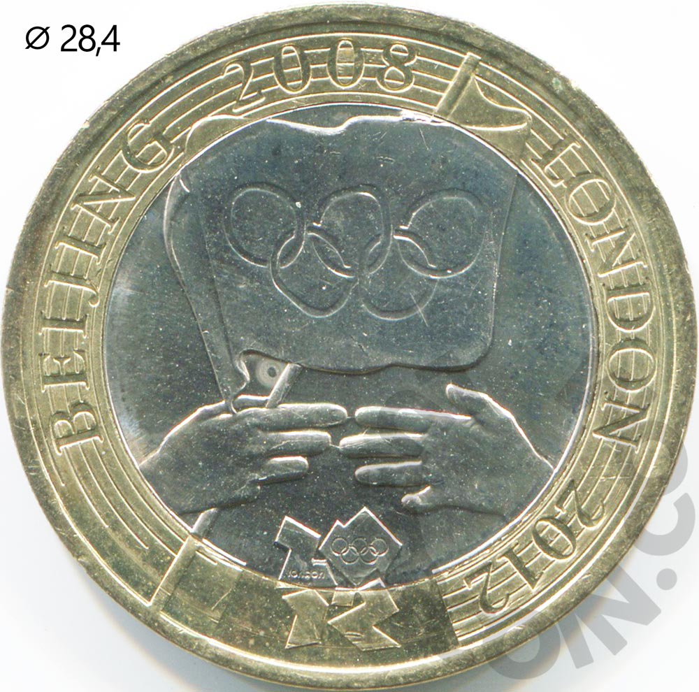 Великобритания 2 фунта 2008 Летние Олимпийские игры 2012 в Лондоне. Передача флага (00046044)