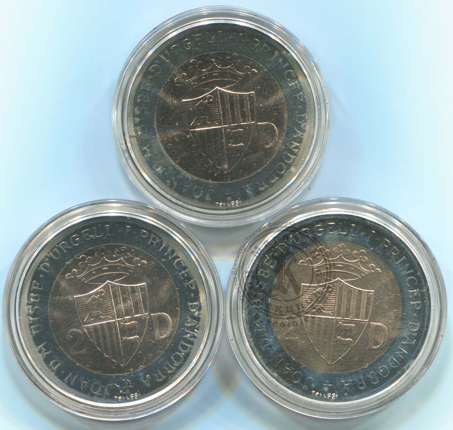 Андорра набор монет 2 динера 1984 Животные (3 монеты) UNC